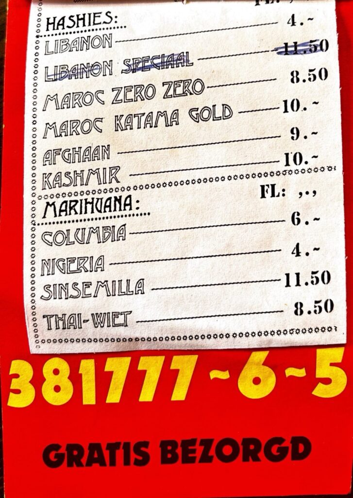 Een van de vertellers greep de gelegenheid aan om het Stadsarchief een archiefstuk aan te bieden: de bon van een hasjkoerier uit 1987, voorzien van een keurig prijslijstje. Zelf twijfelde de schenkster of dit nou interessant was voor de collectie, maar archivaris Renée Cranen was er dolgelukkig mee.